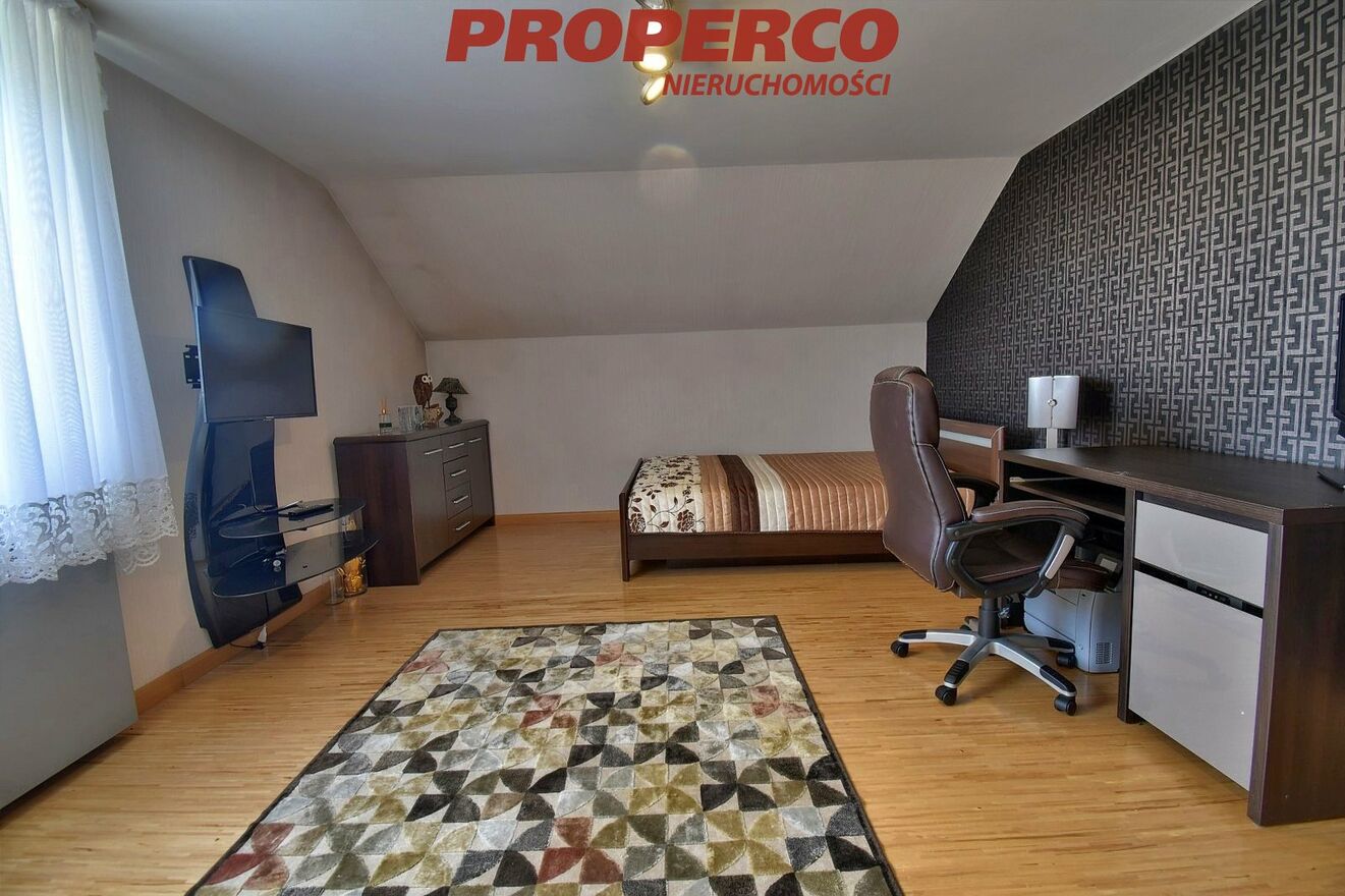 The property is located in a quiet and peaceful housing estate. In the vicinity - shops, bus stop. Convenient and fast access to the city centre, approx. 7 km to Kielce Market Square. The building is close to Cedzyna Reservoir, shops, green areas, cycling and recreational routes.